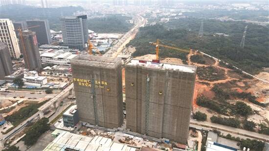 25日,位于增城的羊城晚报文化创意产业中心北区封顶 羊城晚报记者 林桂炎 摄