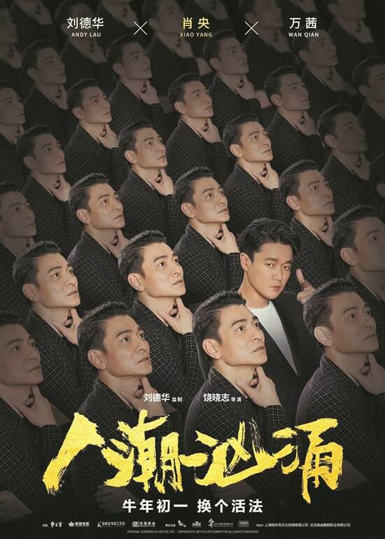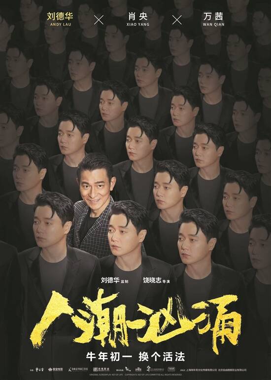 电影《人潮汹涌》由刘德华监制,饶晓志执导,刘德华、肖央、万茜领衔主演,讲述冷酷“杀手”周全(刘德华饰)和落魄龙套陈小萌(肖央饰)在一次意外中交换了彼此的身份,从而引出一系列阴差阳错的故事。在“好多人”版海报中,每张海报刘德华与肖央都望向不同之处,表达了两人南辕北辙的身份差异。但两张海报拼凑在一起,你就会发现原来二人目光早已交汇,这又预示着电影中的周全与陈小萌宿命般的相遇。