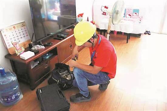 智慧家庭工程师正在用户家处理宽带问题