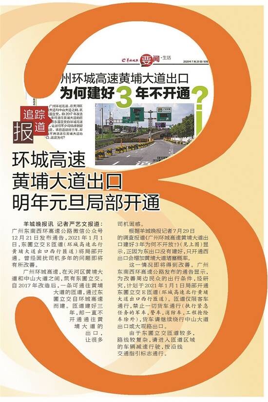 建好三年多却不开通的尴尬终于缓解了!新年首日,广州环城高速东圃立交通往黄埔大道的西匝道移除路障供车通行。去年12月28日,环城高速东圃立交的明镜路匝道也宣布开通。两条匝道的开通,为市民出行提供便利。而这背后,离不开媒体舆论监督和人大代表的持续努力。