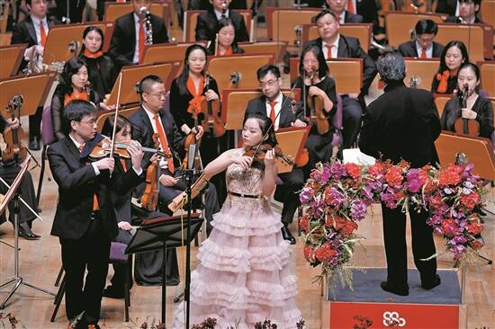今年的新年音乐会除了演绎经典作品之外,还呈现了“献礼建党百年”两部作品的片段:于阳的《中国颂》、杨帆的《父辈》。“这两部作品比较符合新年气氛,距离它们的正式首演还有时间,这次新年音乐会之后,作曲家还会继续打磨、修改。”上交团长周平还透露,这次演出的音乐家大部分都是年轻人。