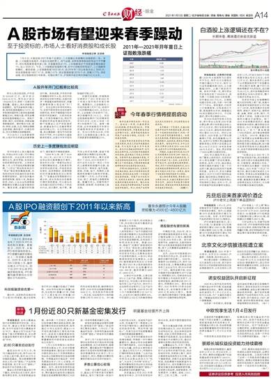“白酒企业从2021年1月春节备货陆续开始,结合渠道反馈,当前大部分名酒品牌库存较低、价格稳定,渠道信心充足。”申万宏源在当日最新一份研报中指出,2021年是“十四五”开局之年,看好白酒尤其是在上半年表现,布局龙头和底部复苏品种当前已得到持续验证。长期来看,高端酒还是最优赛道,行业格局会发生大的变化,大众酒升级和整合是确定性趋势。