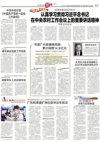 羊城晚报讯 中国共产党的优秀党员,久经考验的忠诚的共产主义战士,第六届全国政协委员,广东省政协第五、六届副主席,省委统战部原部长,享受省长医疗待遇的离休干部郑群同志因病医治无效,于2021年1月5日13时35分在广州逝世,享年100岁。 (沈惠)