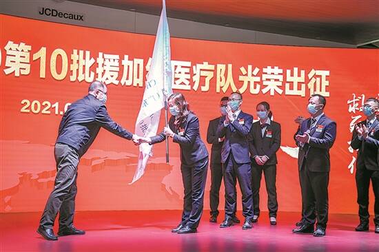 中国(广东)第10批援加纳医疗队授旗仪式现场 羊城晚报记者 梁喻 摄