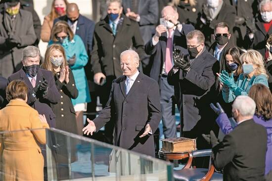 据新华社电 美国当选总统、民主党人拜登20日在首都华盛顿宣誓就任美国第46任总统。
