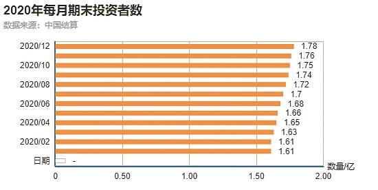近日,中登公司披露了一项重要数据:2020年12月A股新增投资者162.18万,同比增长100.39%;截至2020年12月末,投资者总数合计1.78亿,同比增长11.28%。这也是A股市场连续10个月单月新增投资者数量超百万。从月度数据计算,2020年全年市场新增投资者1802.25万——这意味着每天新开户数近5万。