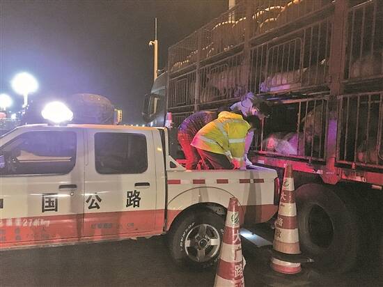 高速路政深夜上演“抓猪大战” 通讯员供图