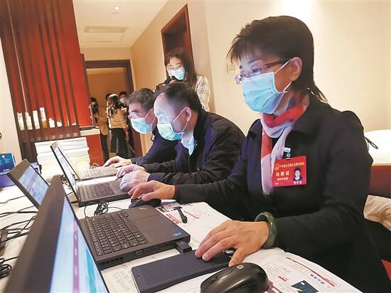 羊城晚报讯 记者侯梦菲摄影报道:“联网系统功能非常强大,有助于代表们更好监督政府的预决算执行情况!”1月23日,省人大代表、惠州立信羊城会计师事务所常务副所长邓中青在代表驻地用上了广东省预算联网监督系统。这也是该系统首次接入省人代会会场,代表可以在线上实时审查预算数据,开展“云端监督”。