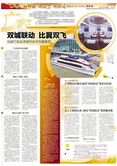 对此,省人大代表、广州市社会科学院副院长尹涛建议,建立广深“双城联动”的常态化机制。