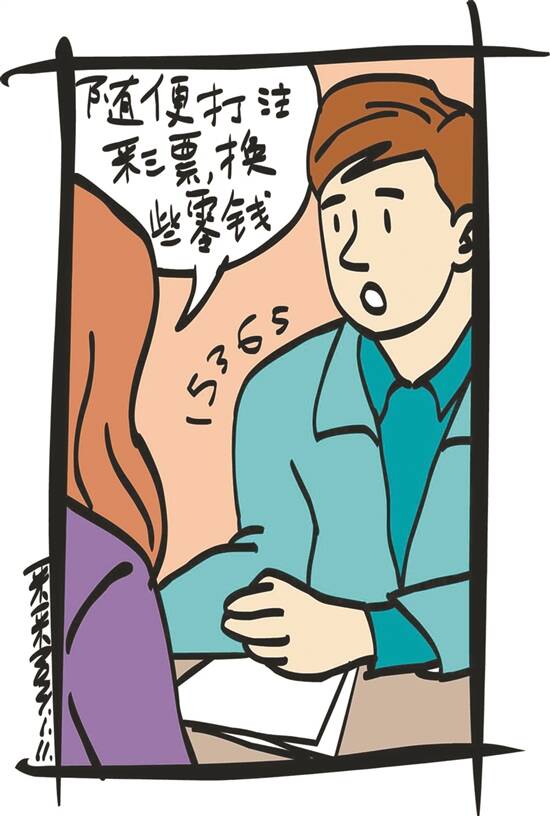一天,阿明跟往常一样,坐在自家彩票投注站里打彩票。柜台前来了个瘦小的女人,递来一张10元的钱,请阿明随便打注彩票,换些零钱。