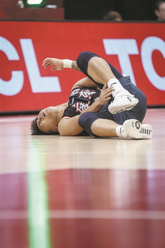 广东队球员赵睿在昨晚比赛中受伤倒地 新华社发