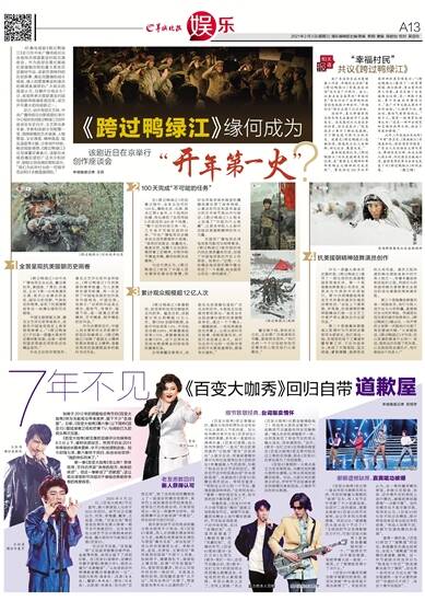 2021年2月3日/星期三/ 娱乐编辑部主编/责编 李丽/ 美编 陈健怡/ 校对 吴慧玲