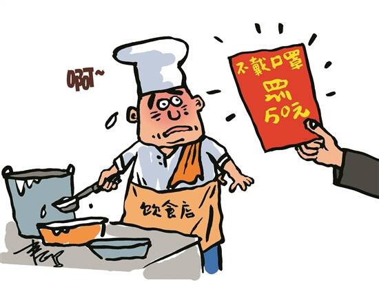 2月1日上午,福建省厦门市思明区莲前市场监督管理所执法人员在对辖内加州广场和牛庄一带餐饮服务单位的日常巡查中,对9家未执行《福建省餐饮服务从业人员佩戴口罩的规定》的餐饮经营户下达责令整改通知书。当日下午,执法人员在“回头看”中发现仍有1家餐饮经营户从业人员未按规定佩戴口罩,遂对其处以50元罚款,这是新规实施以来开出的首张罚单。(2月2日《人民日报》)