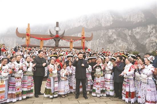 2月3日至5日,中共中央总书记、国家主席、中央军委主席习近平来到贵州考察调研,看望慰问各族干部群众,向全国各族人民致以美好的新春祝福。这是3日下午,习近平在毕节市黔西县新仁苗族乡化屋村文化广场上,向全国各族人民、港澳台同胞和海外侨胞拜年 新华社发
