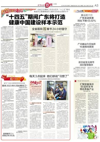 2021年是“十四五”开局之年,广东将高标准规划“十四五”健康广东建设,努力保持全省主要健康指标在全国先进水平。