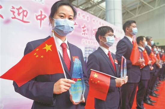 据悉,由广州中医药大学第二附属医院(广东省中医院)、广州市番禺区中心医院、广州市番禺区何贤纪念医院组建的中国(广东)第九批援加纳医疗队,自2019年12月28日出发,历时390天,在非洲加纳克服重重困难,出色完成医疗援助任务和集中休整,平安回到广州。昨日,欢迎回家仪式在广东省中医院举行。