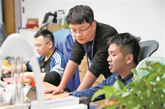 羊城晚报讯 记者沈婷婷摄影报道:22日,深圳南山智园,机器人企业优必选科技公司研发人员正与北京团队远程连线,讨论产品的最新优化。央视2021牛年春晚的舞台上,深圳优必选科技全新研发的首款大型四足机器人化身“拓荒牛”,与刘德华、王一博、关晓彤等一起呈现了科技感十足的创意表演《牛起来》。