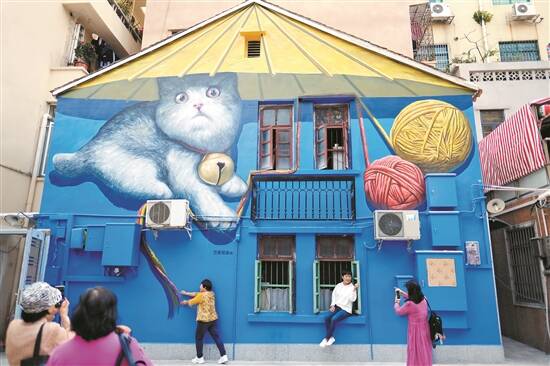 广州越秀区的府学西街经过品质提升工程后,道路两旁的许多建筑外立面上布满独具创意的3D壁画,昔日的老旧楼房变身为充满广府风情的“涂鸦街”,市民、游客纷纷前来打卡拍照
