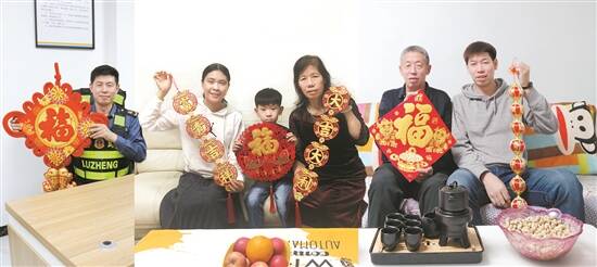 在众多的“云”上全家福中,有一张特别引人注目,那是路政中队长王猛一家以三张照片拼接而成的全家福(见上图)。王猛在路政岗位上工作近17年,每年春运,他总是带领队员全力守护广大司乘人员平安返乡过年,今年也不例外。
