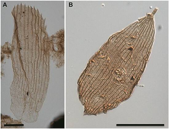 蝴蝶和蛾类其实也很难留下化石。它们在分类学上属于鳞翅目昆虫,最明显的特征是身上和翅上被覆鳞片,拥有虹吸式口器——长长的喙,便于吸食花蜜。2012年,一个致力于研究孢子和花粉的古生物学研究团队在搜寻古老的叶子凋落物和沉积物时,在有机沉积物中发现了一些无法解释的微小结构。研究者最终发现,这些微小结构是原始鳞翅目昆虫翅膀的遗骸。根据孢粉学分析,这些遗骸出现的沉积层形成于三叠系-侏罗系过渡时期,大约在两亿年前。也就是说,鳞翅目昆虫至少在两亿年前就已经在地球上出现。