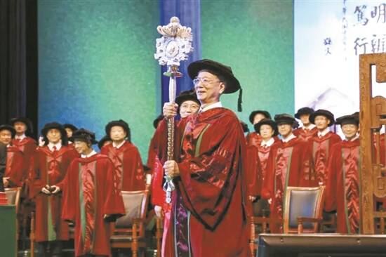 中山大学2018届毕业典礼暨学位授予仪式上,黄天骥教授执权杖 中大供图