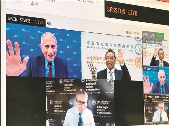 2日晚,钟南山连线对话福奇 通讯员 穗外宣 供图