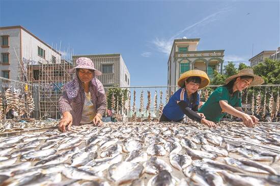 麻章区通明港渔民正在制作海产品 刘洁贞 摄
