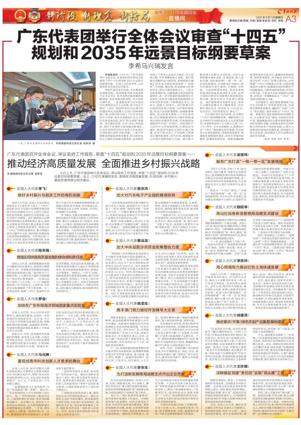 广东代表团举行全体会议审查“十四五”规划和2035年远景目标纲要草案