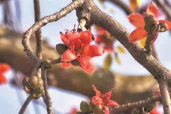 每年木棉花开时,不少市民会在木棉树下、花丛里捡一些落下来的木棉花,拿回去晒干煲汤喝。老广们熟知的“五花茶”,其中的一种花就是木棉花。