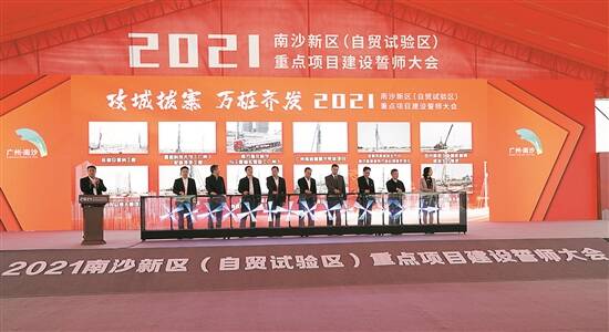开局即是决战,起步就要冲刺。3月8日上午,南沙新区(自贸试验区)举办了2021年“攻城拔寨”重点项目建设誓师大会,在中科空天飞行科技产业化基地项目现场,通过视频连线南方海洋科学与工程省实验室(广州)等一批项目,同步启动桩基础工程建设,以“万桩齐发”打响全年“攻城拔寨”的“第一枪”,拉开了全年202个总投资共6264.5亿元、年度投资910.6亿元的重点项目投资建设序幕。