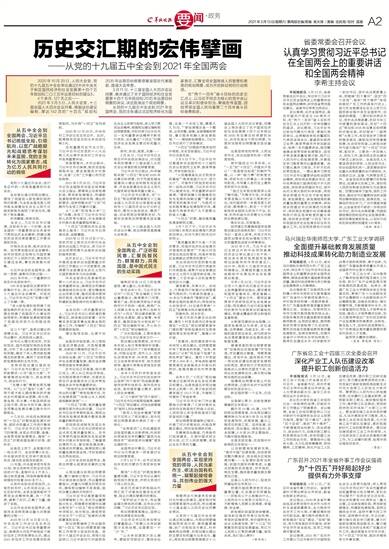 会议强调,这次全国两会,是在中国共产党成立100周年之际,在“两个一百年”奋斗目标历史交汇点上召开的一次举世瞩目的盛会。会议期间,习近平总书记参加内蒙古代表团、青海代表团审议,出席解放军和武警部队代表团全体会议,看望政协医药卫生界、教育界委员并参加联组会,发表一系列重要讲话,就完整准确全面贯彻新发展理念、坚定不移走高质量发展之路、践行以人民为中心的发展思想、开展党史学习教育等作出重要部署。我们要认真学习领会,不折不扣抓好贯彻落实。一要认真学习贯彻习近平总书记重要讲话和全国两会精神,深刻领会把握总书记、党中央带领我们取得的极不平凡的成就,深刻领会把握总书记、党中央对大局大势的科学判断,深刻领会把握总书记关于新发展阶段、新发展理念、新发展格局和高质量发展的重要论述精神,深刻领会把握总书记深厚的为民情怀,深刻领会把握中央完善香港特别行政区选举制度的重大举措,深刻领会把握“十四五”和今年我国经济社会发展目标任务及重点工作,切实把思想和行动统一到总书记、党中央决策部署上来,把增强“四个意识”、坚定“四个自信”、做到“两个维护”体现到做好广东工作的具体行动上,奋力在全面建设社会主义现代化国家新征程中走在全国前列、创造新的辉煌。二要对标对表总书记、党中央决策部署,抓好今年工作部署的落地落实,抓好“十四五”规划和2035年远景目标纲要的对接实施,抓好服务“一国两制”大局工作,抓好党史学习教育的推进落实,确保经济持续健康发展、社会安定和谐,以新担当新作为奋力推动广东“十四五”开好局、起好步。三要进一步加强人大、政协工作,推动民主政治建设不断迈上新台阶。全省各级人大要坚持党的领导、人民当家作主、依法治国有机统一,紧紧围绕党中央重大决策部署依法行使职权,扎实做好立法、监督、代表等各项工作。全省各级政协要履行好职能责任,拓展深化协商工作,更好把人民政协制度优势转化为治理效能。四要加强学习宣传,狠抓工作落实,推动总书记重要讲话和全国两会精神落到实处、取得实效。认真组织传达学习,广泛开展宣传宣讲,让全省党员干部进一步领会好总书记、党中央决策部署,巩固拓展疫情防控和经济社会发展成果,更好统筹发展和安全,以实际行动和优异成绩庆祝建党100周年。