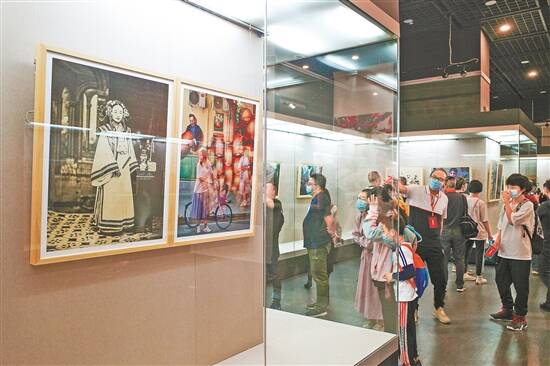 在“对镜——每日一拍辛丑新春特展”上,今年春节期间市民拍摄的精彩作品与历史影像展开时空对话 羊城晚报记者 宋金峪 梁喻 摄