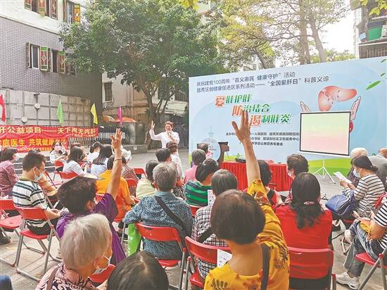在活动现场,来自周围社区的100多位街坊认真听讲座,积极与赵祝香主任互动,跟着黄梓飞医生学做护肝健康操。来自广州市第一人民医院的十多位专家在现场不仅免费给群众进行义诊,同时还大派福利,免费给街坊进行HBV DNA高敏检查、HCV抗体筛查以及HCV RNA检查和基因分型。