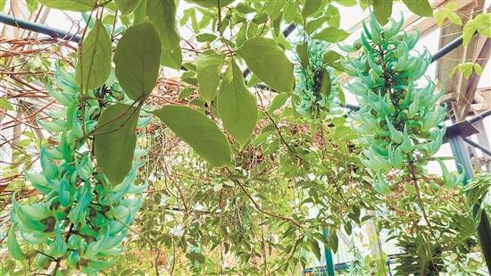 进入三月末,南方气温逐渐转暖,华南植物园迎来了新客——翡翠葛(见图)。翡翠葛花形奇特,花色稀有,国内目前仅华南植物园等少数几个地方有栽种。