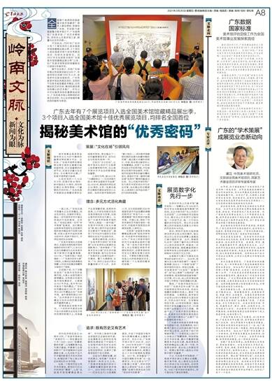 首先是策划显新意。美术馆作为对社会开放的公共文化机构,需有不断更替焕新的内容推出,这是其职责所在。在典藏、研究、展示、传播等诸环节中,展览项目是大头。以广东近年引起全国关注的展览项目为例,选题构思能把握时代脉动,内容主旨有重要社会价值,切入角度则新颖独到。这样的公共产品方可符合公众期待,以呼应人民群众不断增长的文化诉求。