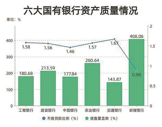 不良贷款余额和不良贷款率是衡量银行资产质量的重要指标。银保监会数据显示,去年四季度末商业银行不良贷款率为1.84%。而去年六大行的这两项指标均呈现上升态势,但六大行的不良贷款率仍低于商业银行平均水平。