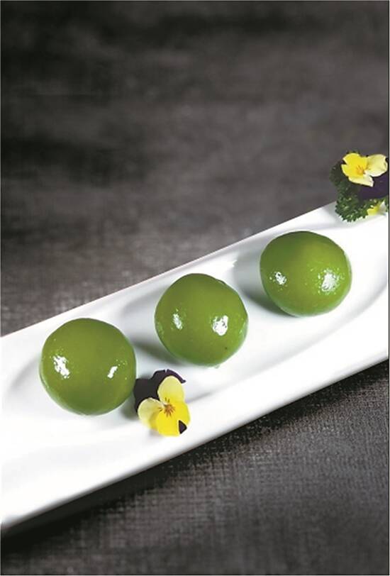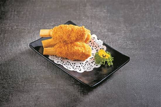 为此,广州不少餐厅清明期间在这两款食材上可谓做足功课——虾饺妹的招牌菜是虾以及各种与虾相关的点心和菜品。清明时节,不时不食,店家于是围绕清明虾大做文章,其体育东店推出新潮、贴题又美味的“清明蔗酥炸鲜虾球”。厨师把鲜美虾胶裹在清明蔗上然后裹面包糠油炸,外脆里嫩鲜甜弹牙,堂食或打包作为拜祭时的小吃都十分应节。