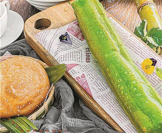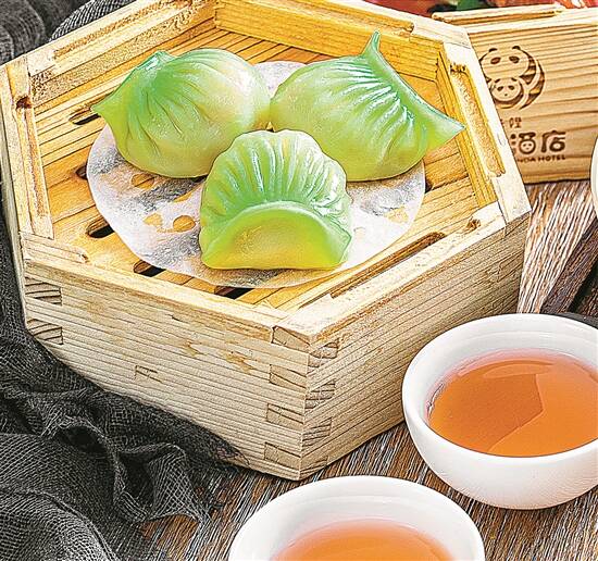 清明蔗是清明时节有代表性的食物,熊猫酒店为此“玩出”新花样。由于他们是亲子酒店,顾及小童客人的牙齿尚未发育完全,可能会咬不动比较硬的甘蔗,为了让小朋友记住清明时节这个有代表性的食物,在早茶放题活动中,厨师别出心裁加入蔬菜汁,让“油炸鬼”呈现翠绿色并做成甘蔗模样,还命名为“掂过碌蔗油炸鬼”,美味又有趣。