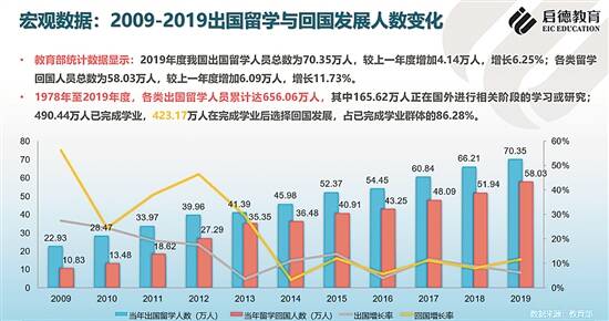 据教育部数据显示,2019年度我国出国留学人员总数为70.35万人,较上一年度增加4.14万人,增长6.25%。目前,虽然2020年数据未出,但受疫情影响,出国人数势必有所下降。伴随疫情的渐渐稳定,目前,多家机构的数据显示,2021年留学市场有望回暖。