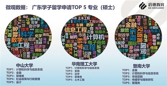 《白皮书》显示,中大、华工、华农、广大、广工出国留学的首选专业都是计算机类,而暨大、广外等则首选金融专业。其余管理类、会计类、市场营销、教育类等也是广东高校学子出国留学的热门专业。