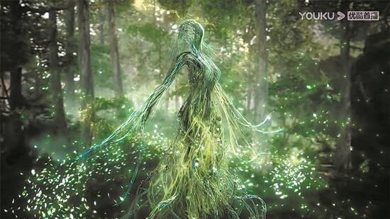 该剧对“美”的执着也延续到了特效制作上。开篇司藤被唤醒的桥段堪称难度最大的特效场面之一:无数藤条破土而出,在一片荧光之中逐渐汇聚成人形,最终演变成司藤的模样。“小说里其实是从骷髅演变而来的,但我们希望画面更唯美,在特效上有一些科幻感的创新。”伍星焰表示,全剧共有约200多分钟的特效画面,都是一帧一帧精细打磨而来,一个技术环节往往要经过许多个不同版本的尝试后才最终敲定。
