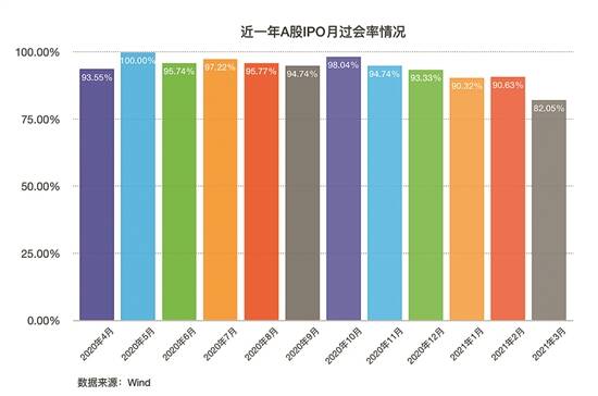 过会率下降,是今年以来IPO市场的一大特点。数据显示,今年前3个月的过会率分别为90.32%、90.63%和82.05%,低于2020年同期水平,且今年3月的过会率,是近一年来首度跌破90%。而从被否企业的分布来看,有6家来自科创板和创业板,2家来自主板市场。