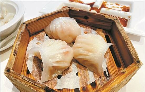 广州酒家的点心有不少“拥趸”,金鼎虾饺皇皮薄肉鲜,内馅虾仁个个新鲜饱满;酱香豉香蒸凤爪,凤爪软糯,入口即化;香滑不甜腻的高桶葡式蛋挞惹人喜爱;入口很有层次的红米肠一层粉皮、一层酥脆、一层鲜虾美味又有趣。