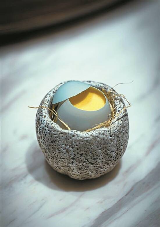 鱼子酱卤水鹅肝是跃·Yuè的招牌菜,卤水鹅肝作为一道潮州传统名菜,厨师用分子料理手法将鹅肝、鱼子和醋很好融合,食物容器和品尝方式都非常特别。香芋扣肉,如果只看外表,不少人会以为只是常见的蒸水蛋,但挖开上层的蒸水蛋,一股浓郁的香芋扣肉味就扑面而来,原来是香芋和扣肉被混合打成泥铺在下方,有意想不到的效果。