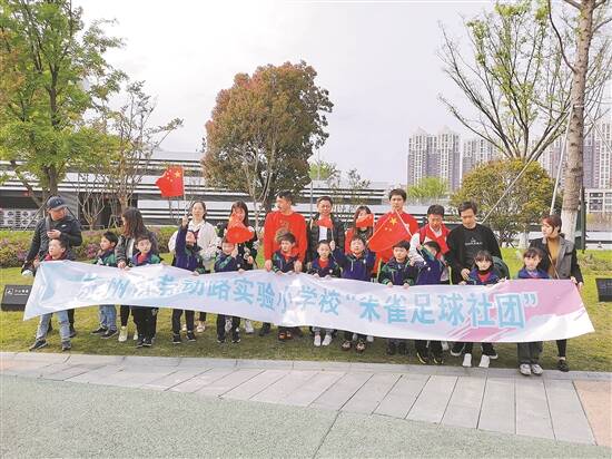 小戴是苏州劳动路实验小学足球社团的一名足球教练,这次她和同事带着社团十几名孩子前来看球,孩子们舞动着小国旗,在球场里为女足姑娘们大声呐喊。“我们就是希望带他们来感受一下足球的氛围,学习女足的风采,尤其是场上顽强拼搏的精神,希望能够从小给到孩子正面的激励作用。”小戴教练说。