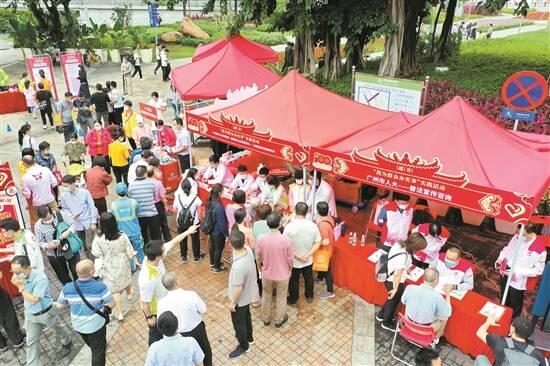日前,广州市正式出台《“您的心愿、我的志愿”——党组织、党员为群众办实事“双微”行动工作方案》。4月18日,广州市越秀区“我为群众办实事”实践活动暨“双微”行动现场服务日在海珠广场举行(见图,通讯员钟涌、胡强明摄)。活动上,广州市人大机关党委、越秀区人民法院机关党委、广东省中医院党委等8个省、市、区党组织代表与越秀区北京街莲花井社区党委等8个社区党组织进行了微项目现场对接认领。“群众微心愿连锁店”的122个群众微心愿被各位党员认领。