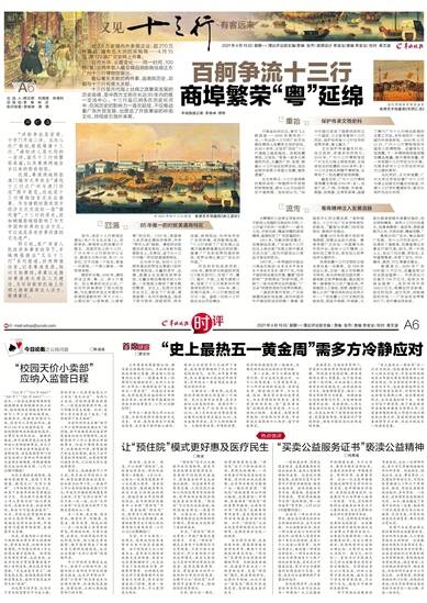 即日起,在广东省人民政府参事室指导下,羊城晚报推出“又见十三行”系列报道,回溯辉煌往昔,记录粤澳发展,探讨文脉赓续,希冀以此推动粤港澳大湾区人文建设、为写好新世纪海上丝绸之路新篇章注入活力。敬请垂注。