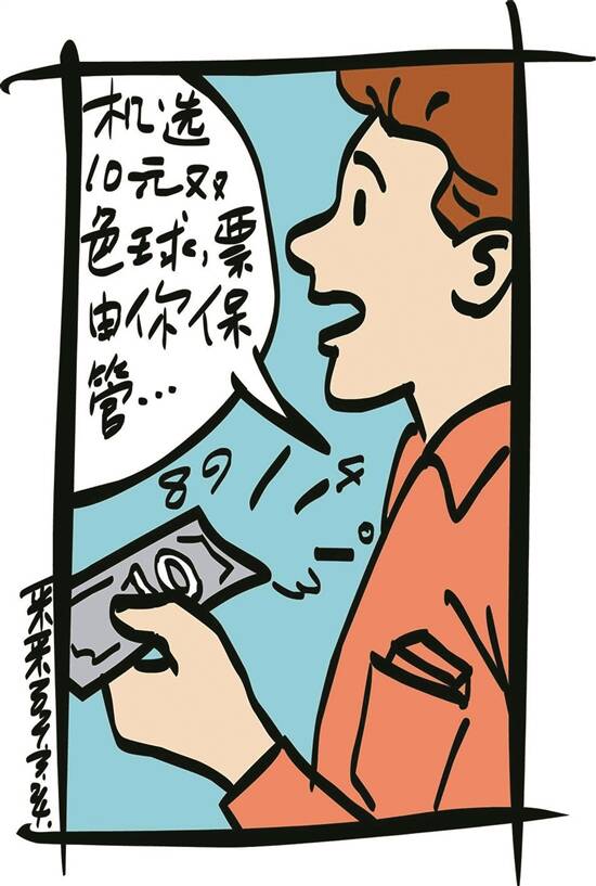 “冲你这份心意,咱今天多买100元。”老张不等马尚友说完,便掏出100元,说:“把刚与你称兄道弟的走前机选的那五注彩票照打10倍,但愿弄个十全十美。”(杨宝江)