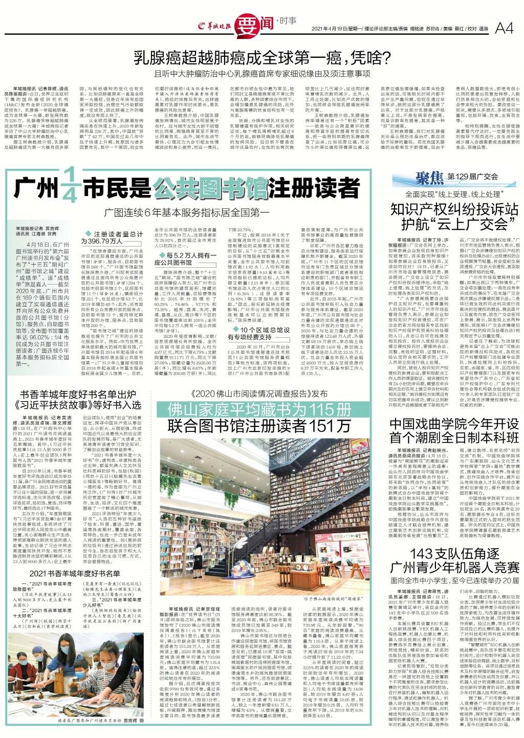 广州1/4市民是公共图书馆注册读者