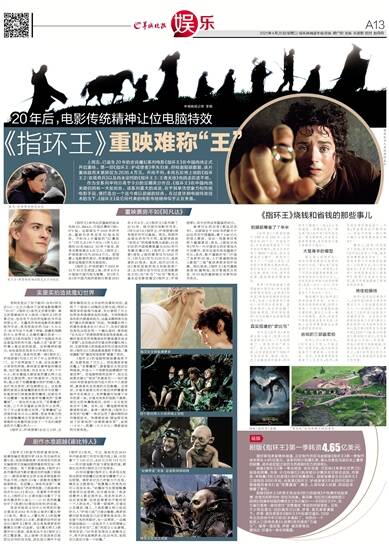 值得对比的还有《泰坦尼克号》。这部诞生于1998年的影片于2012年在中国重映,拿下9.46亿元的惊人票房。但这一现象背后有两个重要原因:首先,《泰坦尼克号》作为一代中国观众的好莱坞大片启蒙作,其知名度非其他重映片可比;其次,影片重映时专门打造了全新的3D版,人们普遍相信进入影院“二刷”能获得更多视听快感。相比起来,《指环王》系列重映虽是4K重制版,但对普通观众而言,非3D版的重映缺乏足够的技术卖点。